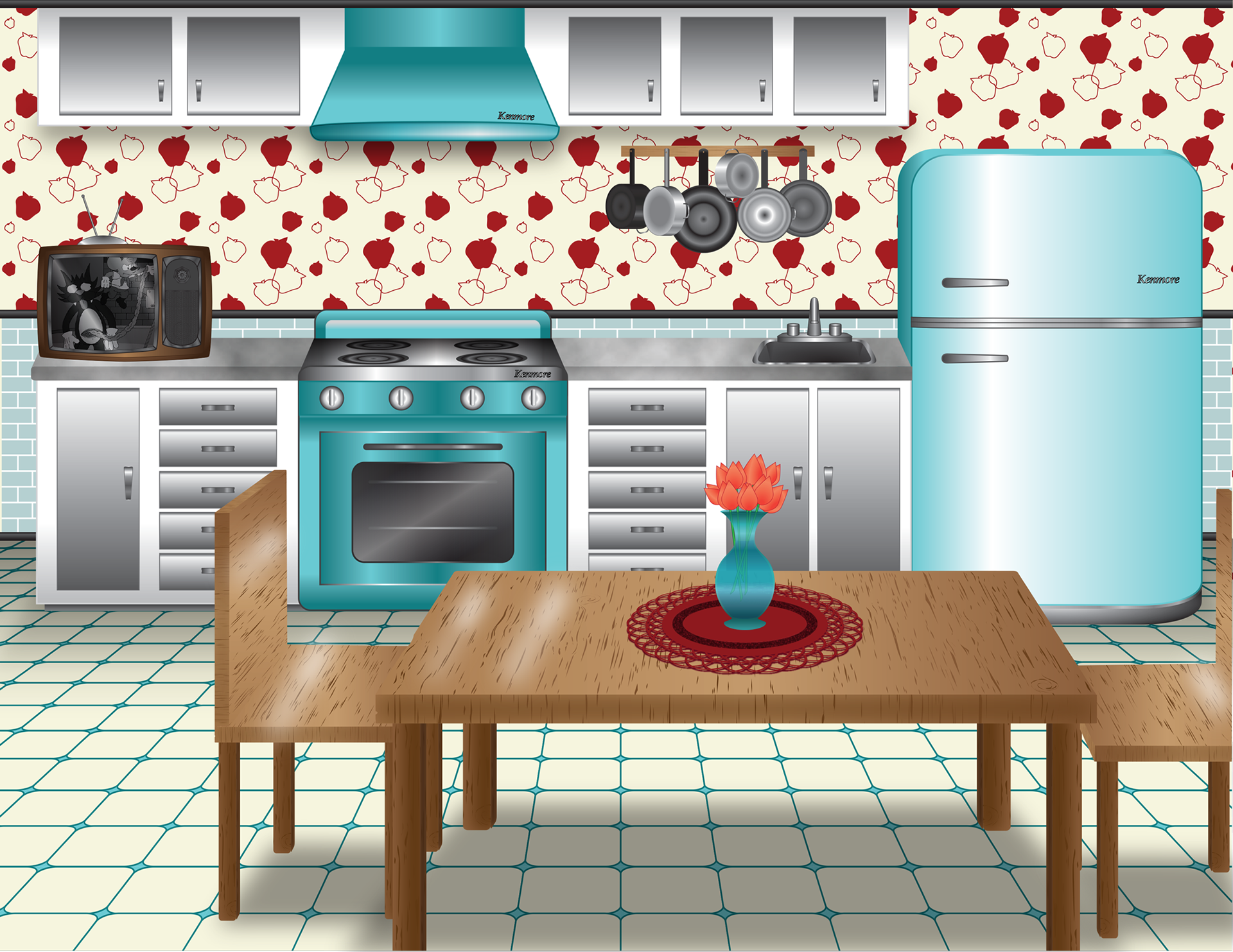 An illustration designed in Adobe Illustrator completely from scratch as part of a class assignment to design a room with 3D depth.